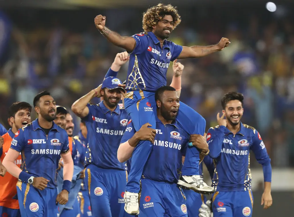 HYDERABAD, INDIA - MAY 12: The Mumbai Indians celebrate after they defeated the Chennai Super Kings during the Indian Premier League Final match between the the Mumbai Indians and Chennai Super Kings at Rajiv Gandhi International Cricket Stadium on May 12, 2019 in Hyderabad, India. (Photo by Robert Cianflone/Getty Images)